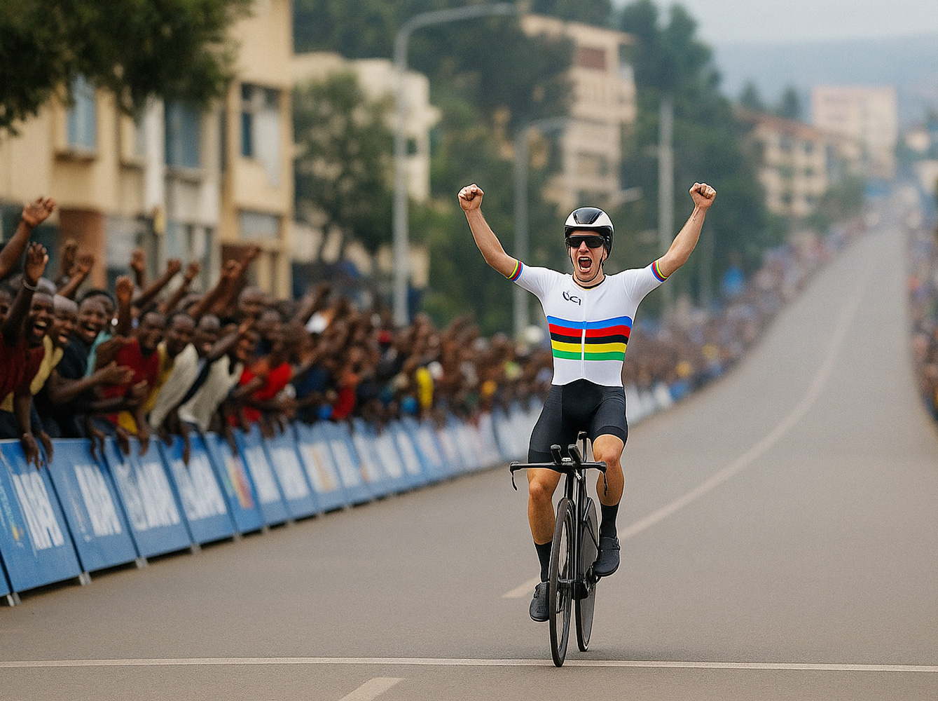 2025年のUCI世界選手権男子エリート個人タイムトライアルは、アフリカ大陸初開催の舞台となったルワンダ・キガリで、歴史に残る熱戦が繰り広げられた。激しいアップダウンと高地特有の厳しいコンディションの中、勝利を掴んだのはベルギーのレムコ・エヴェネプール。序盤から圧巻の高速ペースを刻み、中盤以降の起伏区間でも他を圧倒。終盤の登りではさらに加速し、最後までその勢いを維持してフィニッシュラインを駆け抜けた。第2位には2025年ブエルタ・ア・エスパーニャの好調ぶりをそのままにジェイ・ヴァインが、第3位には同じベルギーのファンウィルデルが入った。今回の個人TTではベルギー勢の調子の良さを示す結果となった。