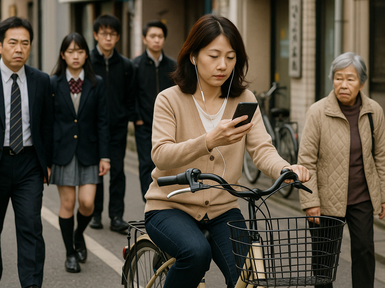 自転車でのイヤホン装着、スマホ操作、傘さし運転──いずれも危険行為とされるものの、街を見渡せば日常的に行われています。こうした行為を当たり前のように続けてしまう心理的背景には、「ママチャリカス」と呼ばれる現象が存在します。これは、ママチャリという生活密着型の乗り物が「交通ルールの対象」という意識から切り離され、歩行の延長のように扱われてきた文化的な油断の象徴でもあります。