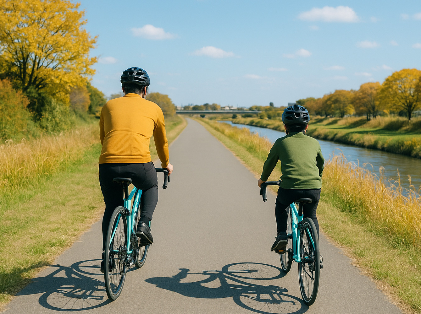 印象に残る太め・細め大小さまざまなおぢンキ達をぼんやりと思い出しながらベンチで小休憩をしていたとき、一組の親子が走ってきた。父親はおそらく40代前半、息子は10歳前後だろうか。ふたりともチェレステカラーのロードバイク。父親のバイクはまず間違いなくARIAだろう。