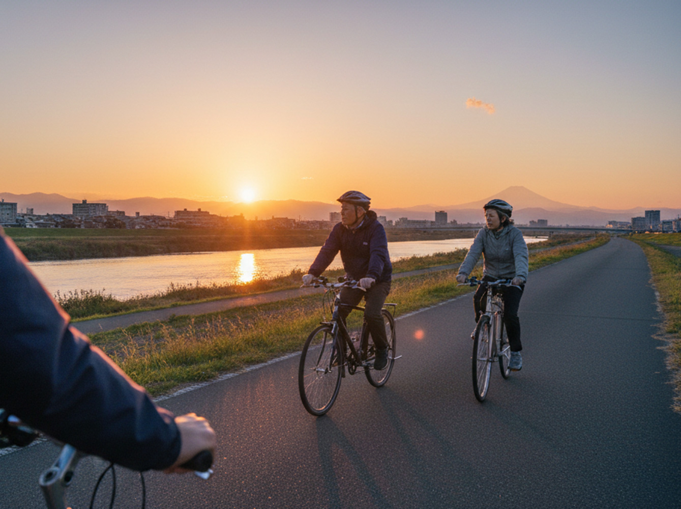 夕暮れの多摩川サイクリングロードを流していたとき、ひと組の老夫婦とすれ違った。おそらく60代後半だろう。ふたりとも乗っているのは、やや型の古いクロスバイクか。夕陽に照らされたふたりは、特に会話をするでもなく、目を合わせるでもなく、ただ静かに同じ方向を見つめながら走っていた。前を行く夫、その少し後ろを淡々とついていく妻。
