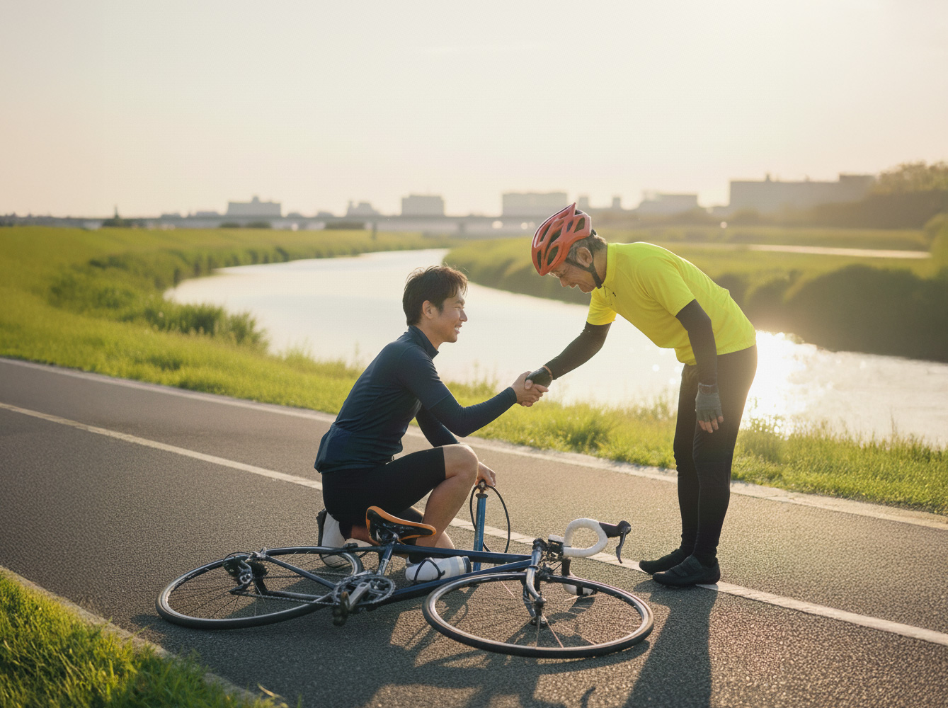 対岸で見ていた私の胸にも、温かいものが込み上げてきた。ロードバイクという趣味を通じて、見知らぬ人同士が手を差し伸べ、心を通わせる瞬間。この美しい連帯こそが、私たちがペダルを回し続ける理由の一つなのかもしれない。あの河川敷の午後、確かに私は「エモい」瞬間を目撃したのだ。