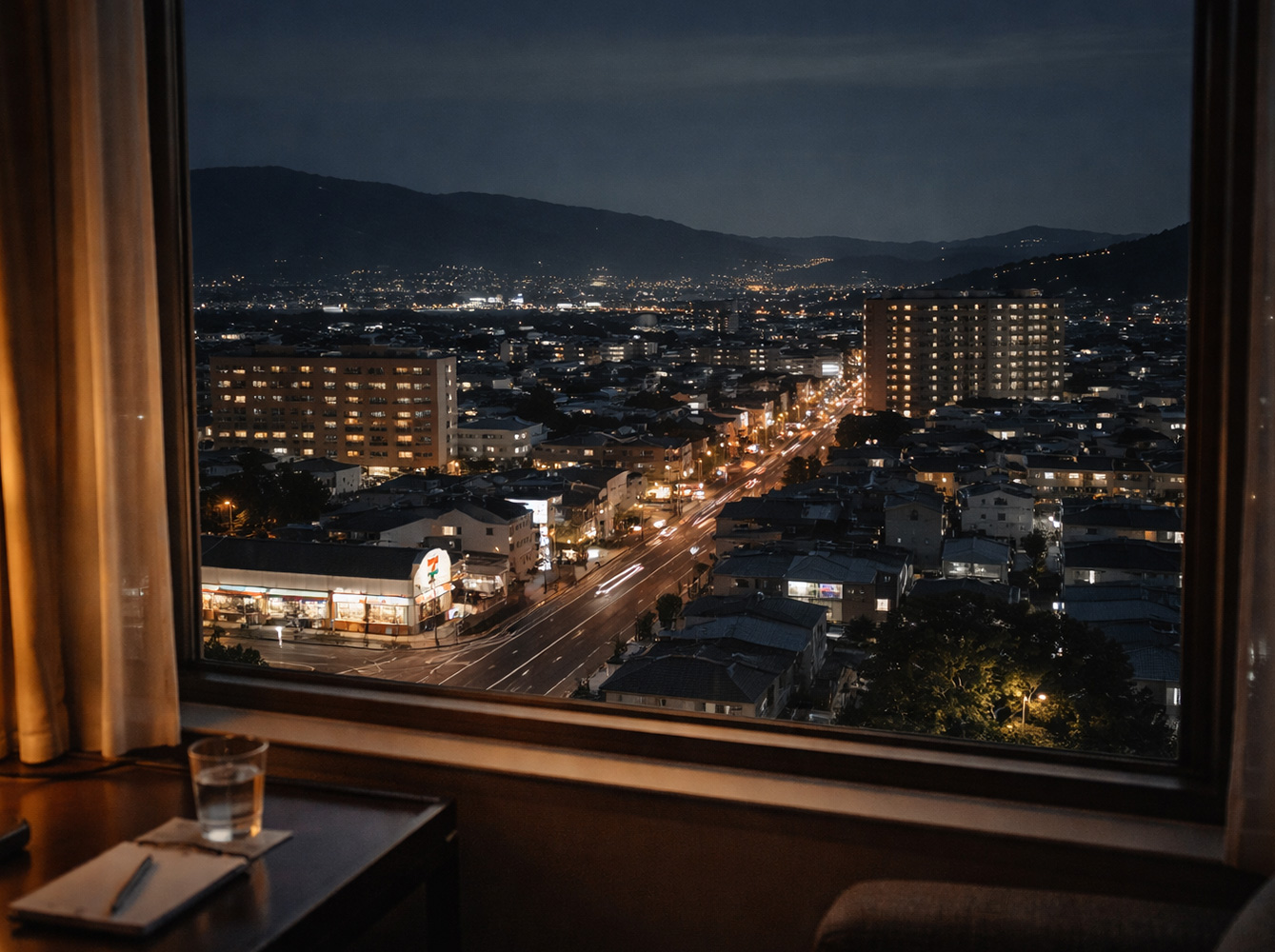 土日にする予定外の宿泊ほど、ライドを色濃くするものはない。夕暮れ時、想定外の悪天候に見舞われ、自宅へ帰るのを諦めた私は、急遽予約したビジネスホテルのシングルルームにいた。